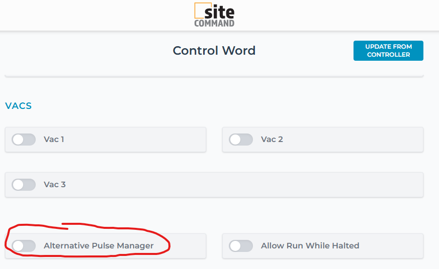 The Alternative Pulse Manager toggle is to enable the Controller to use the Legacy Pulse Manager logic for determining pulse control for the processing of vehicles. If your Pulse Target has an interval of above 100 milliseconds you will want this feature enabled for precise tuning and speed adaptation (Such as single lobe sungears or standard MCWW Pulse Targets). If multi-lobed or high frequency targets, you will want to leave this off so the Controller knows to process the high-speed signals differently.