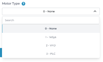 A motor type of "TeSys" indicates the controller is to fire an attached TeSys Bus Coupler motor starter via ModbusTCP communication. These are often referred to as "network driven" outputs. All Cruz Control Car Wash Controllers support 25 TeSys outputs; these are numbered output 128 through output 153.