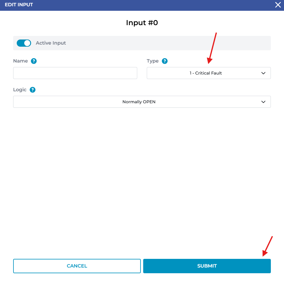 Type - 1 - Critical Fault will disable conveyor along with all outputs from activating. When input logic is set to Normally OPEN, if input turns ON or goes 'high', full system will shutdown.