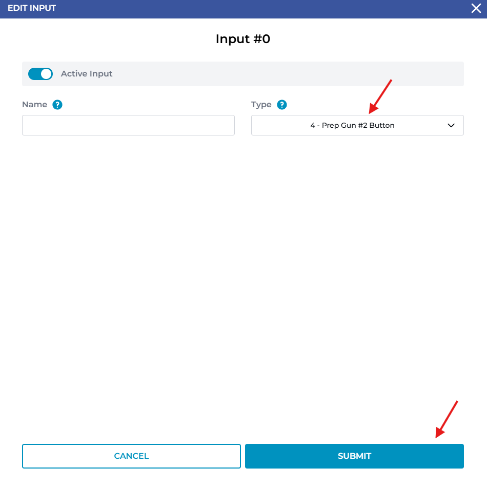 This input, when on (predefined as a normally open contact) will instruct the system to turn on any output(s) assigned Asset Code - Prep Gun, Asset Iteration 2. This input is typically used when operators would like a physical push button to activate a prep gun, in addition to the Prep Gun #2 software button(s) available via HMI.