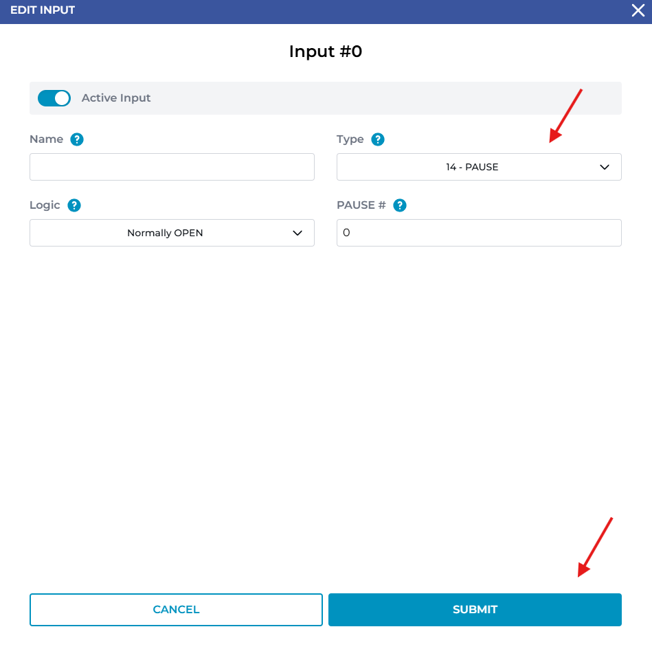 Logic - can be set as Normally OPEN or Normally CLOSED. This designates whether at normal running state, whether the input should be ON or OFF.