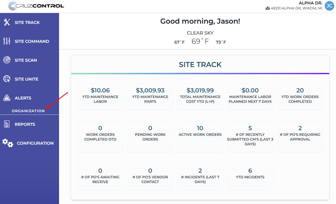 Welcome to Organization! Organization is a grouping of reports and tools that apply to every site and location within your tenant.