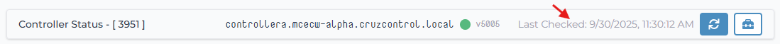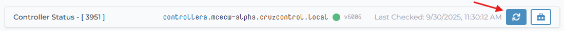 Clicking the refresh button asks Site Command to rerun its Controller Status routine and update this bar with the most recent information.