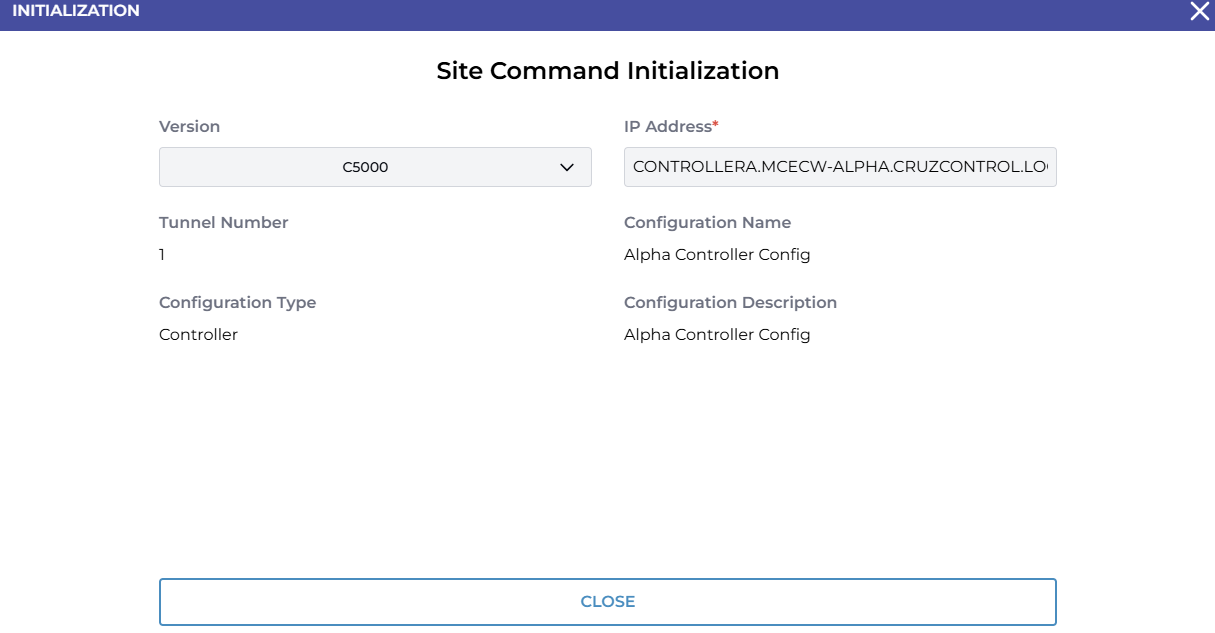 Clicking this button reveals the Site Command Initialization window. Within are more details about your car wash controller and configuration. This is editable by Motor City Wash Works staff only, but is displayed here to the user for informative purposes.